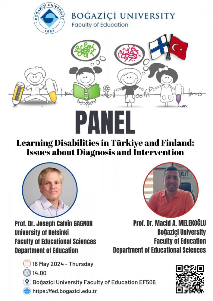 Prof. Dr. Joseph Calvin Gagnon (University of Helsinki) and Prof. Dr. Macid Ayhan Melekoğlu (Boğaziçi University) will be speaking at the panel titled "Learning Disabilities in Türkiye and Finland: Issues about Diagnosis and Intervention" to be held on Thursday, May 16, 2024 at 2 pm in EF 506 (Faculty of Education).